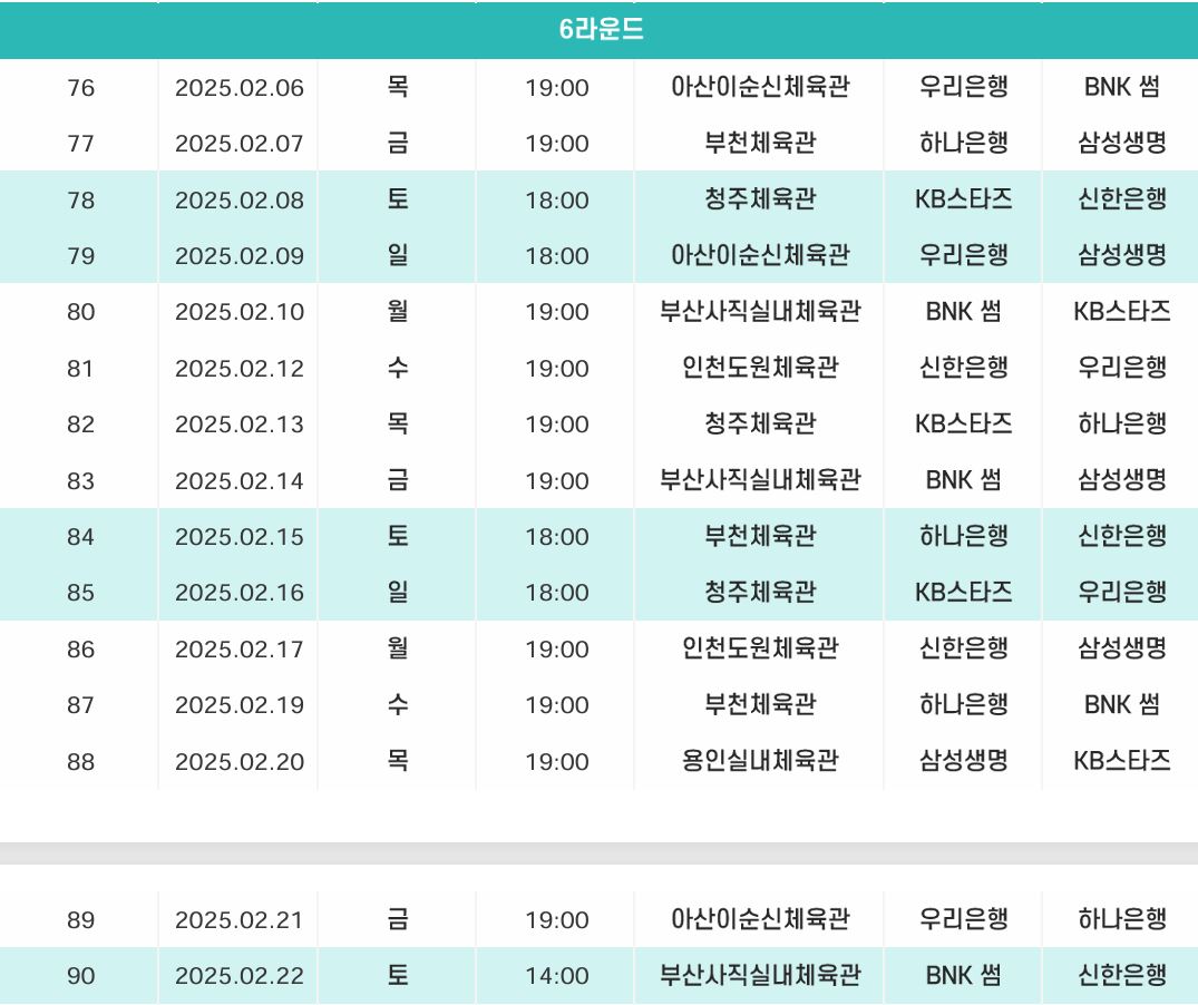 24-25 시즌의 정규 경기는 2024년 10월 27일부터 2025년 2월 22일까지 6라운드로 진행되며, 6개 팀이 라운드 당 5경기씩, 팀당 총 30경기를 진행하게 됩니다.