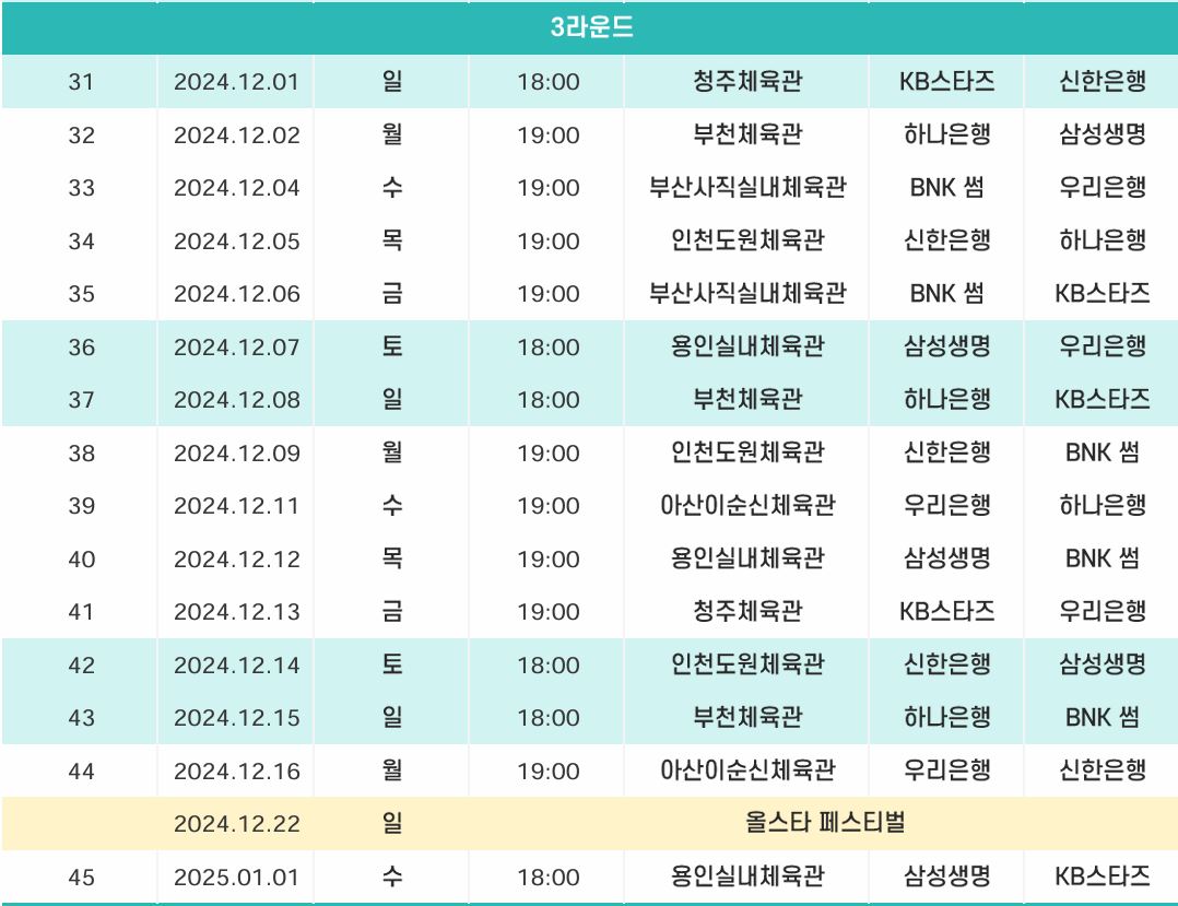 플레이오프 승자 2팀은 2025년 3월 16일부터 24일까지 역시 5전 3선승제의 챔피언결정전을 치르게 됩니다. 올스타전은 2024년 12월 22일에 진행될 예정입니다.